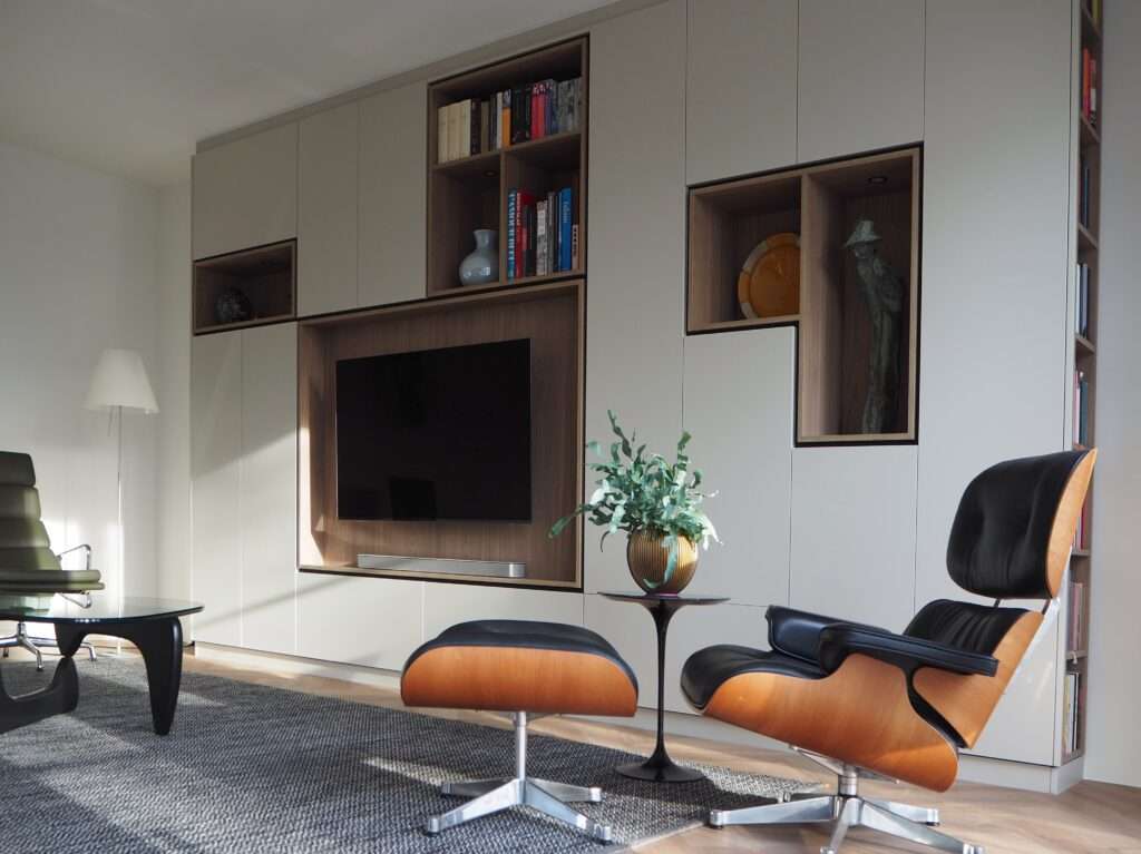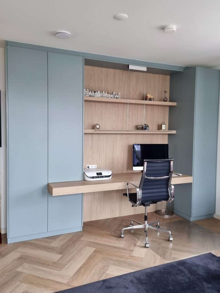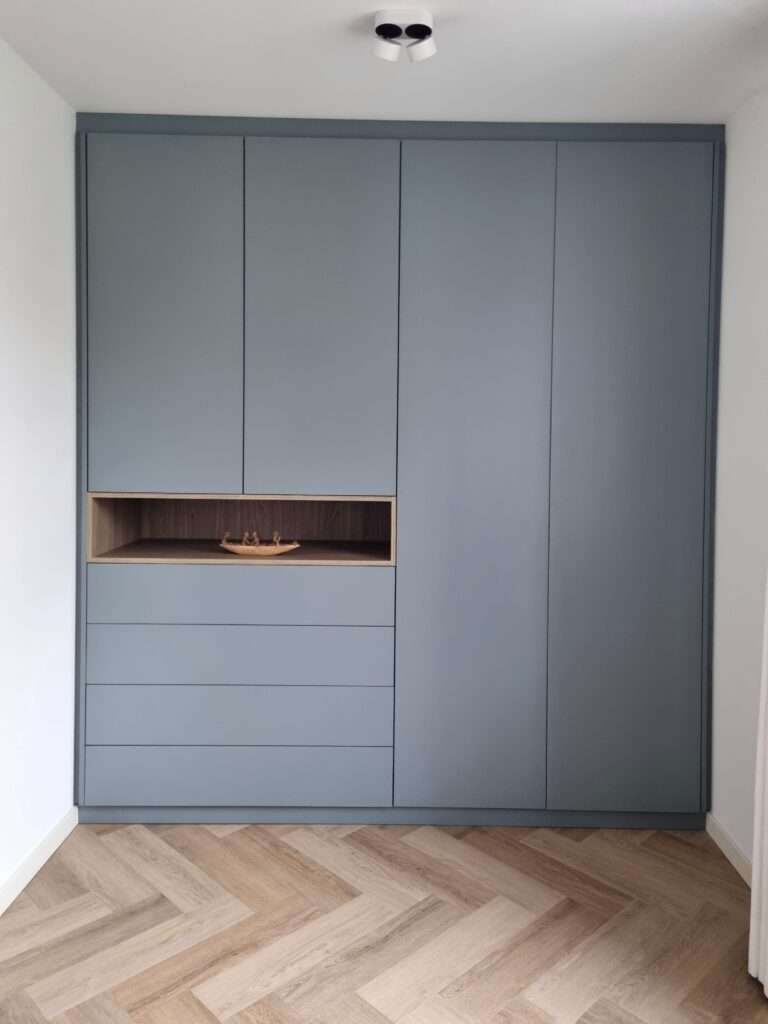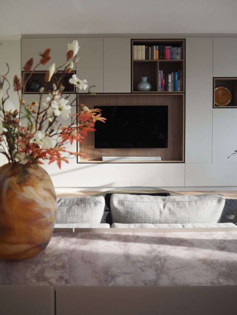 Voor een prachtig appartement heb ik een aantal kasten ontworpen en op maat laten maken. De wens was veel opbergruimte, maar wel mooi!