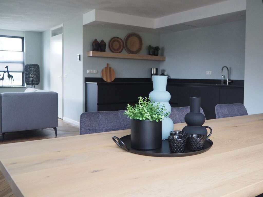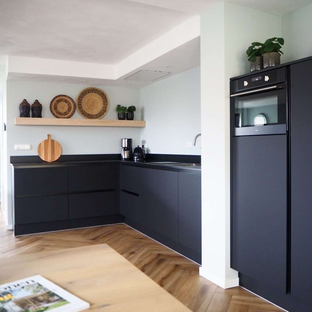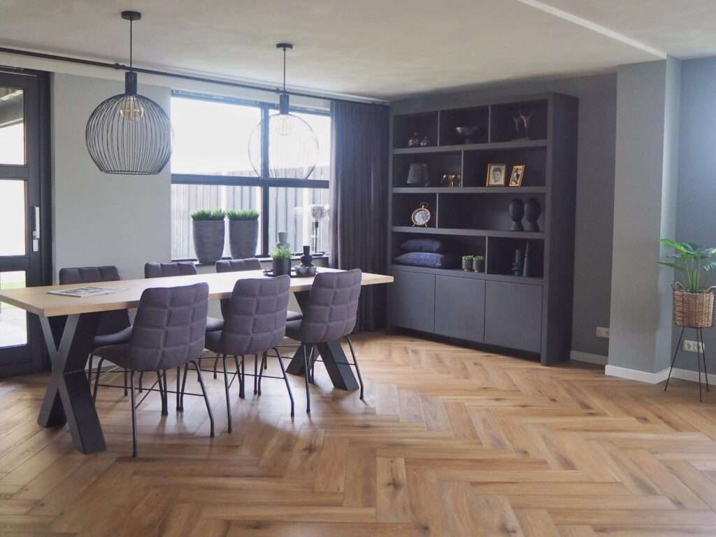 Stijlvol wonen met rustige kleuren en mooie materialen. Voor een vrijstaande woning in Westerbork, mocht ik een rustig en stijlvol plan maken. Een combinatie van lichte kleuren en stoere materialen voor de keuken, maatwerk kast en prachtige visgraat vloer. Ik mocht een kleur- en materialenadvies geven, indeling en meubelplan maken en het lichtplan verzorgen.